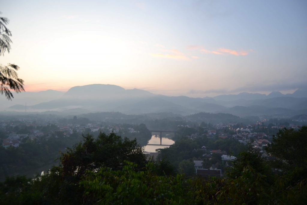 It does sit on a bend of the lazy brown Mekong, and somehow uses this fact to marshal a laid back vibe. It is surrounded by impractically steep sided mountains. Their near vertical slopes cloaked in a heavy matt of biomass so green as to be almost black. These karst formations are more like Seuss drawings dollapped onto a page by a cartoonist than real geology. And the misty mornings common here cut them off at their base and leaving them floating in the hazy early morning sun.